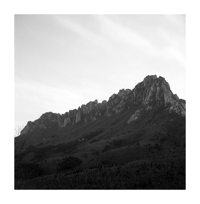 반가운 사진, 나목과 소나무와 울산바위- 큰 사진입니다.