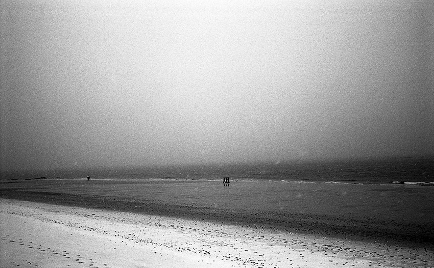 황량한 겨울 해변에 친구가 있어