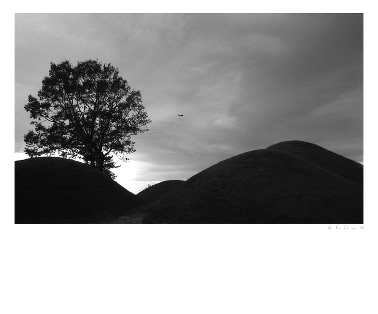 고분군과 비행기 한대,,
