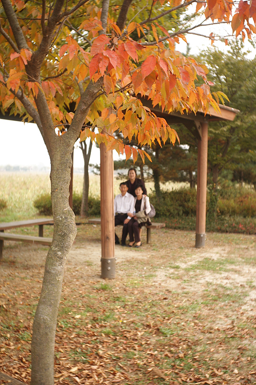 뭐랄까..앞에 물들어 있는 나무가 주인공인듯 한데.. 뒤에 있는 사진찍기 전의 포즈를 취하고 있는 사람들에게서도.. 뭔가 이야기가 들려오고 있고..^^ 깔끔하고 유머러스한 사진같습니다.. |