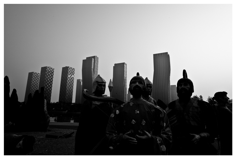 초현대적 고층건물과 대비된 무사의 포쓰가 대단합니다.