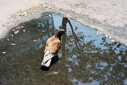 반영된 나무가 너무나도 선명하여 비둘기가 착각했나보네요 ^_^