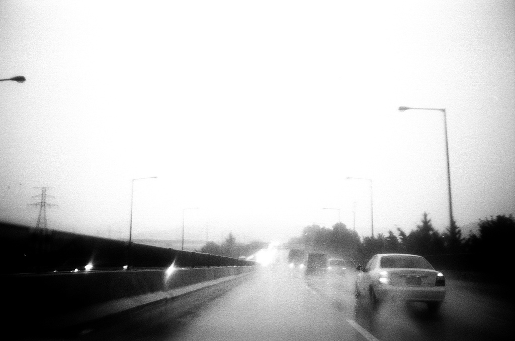 비오는 날 고속도로 질주,