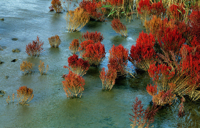 인천 신공항 쪽으로 달리다 보면 오른 쪽 바다 갯벌에 칠면초의 붉은 색이 환상적으로 나타납니다. 칠면초와 퉁퉁마디는 다른 식물이지만 멀리서 보면 환상적인 붉은 색으로 보입니다.