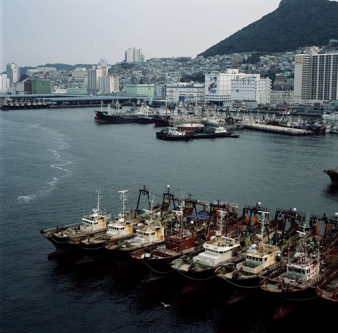 - 설명한 때는 부산 연안을 누비고 다녔던...지금은 줄줄이 엮여 있는 기선 저인망 어선들.