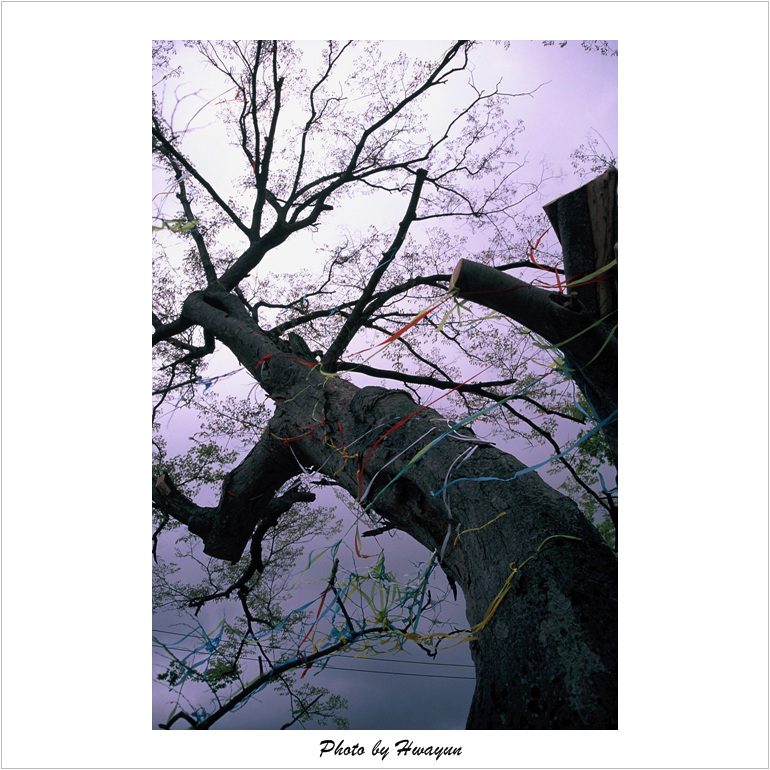 둘러처진 천 조각들을 보니 매우 귀하신 나무(?)인 듯 합니다.