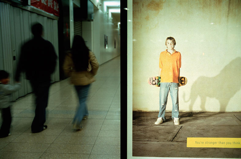 무심히 지나가는 행인(현실)들과, 'You're stronger than you think' 라는