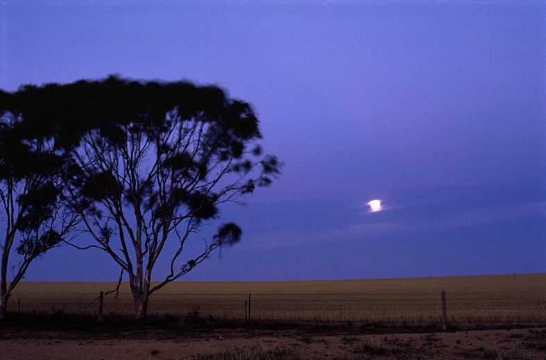 이지러진 보름달에 지평선과 소나무 한 그루 반,