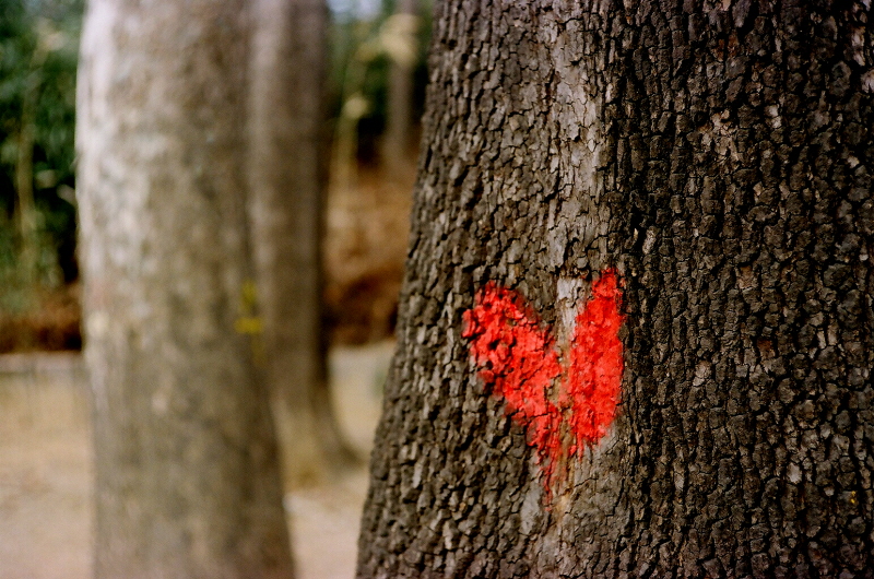 쪼개진 하트.. 나무가 자라면서 갈라진 걸까요?
