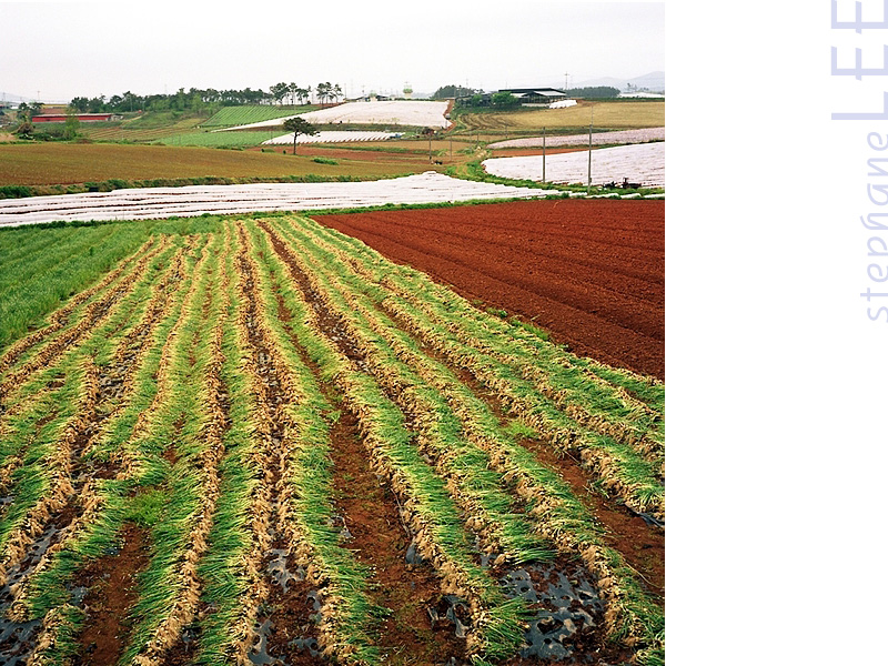 돼지파인지 쪽파인지 뽑아서 늘어논 초록 빛 모습과 갈아 엎은 붉은색 흙이 대조를 이룹니다.