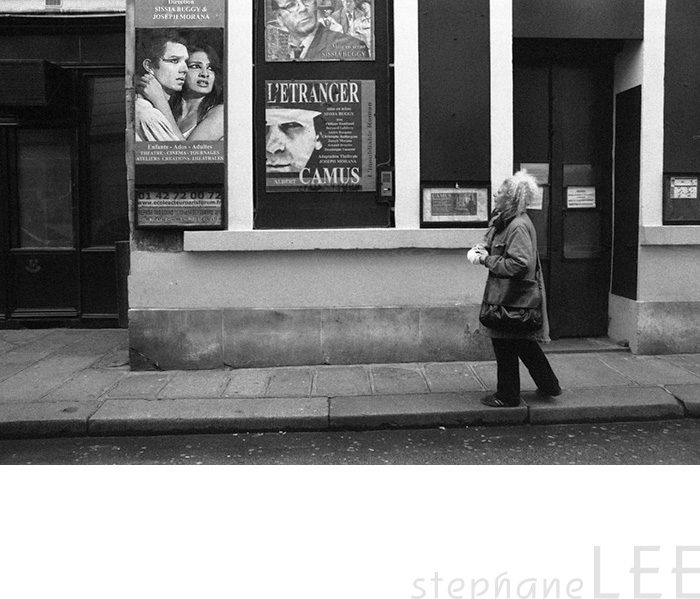 카뮈의 연극 포스터가 보이는군요. <에뜨랑제>인가요?