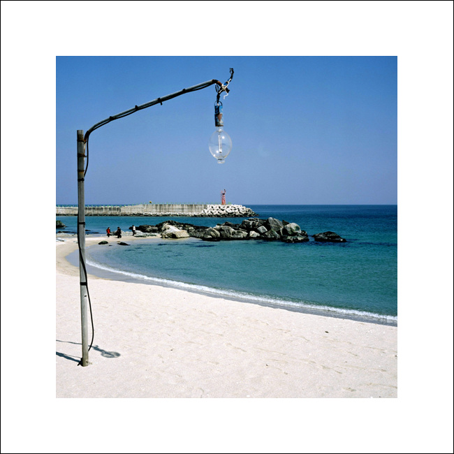 바닷가 외로이 서있는 가로등과 저멀리 사람들이 강렬히 부각됩니다.