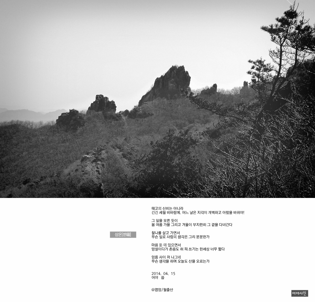 긴긴 세월 비바람에. 어느 날은 지각이 개벽하고 아팠을 바위야!