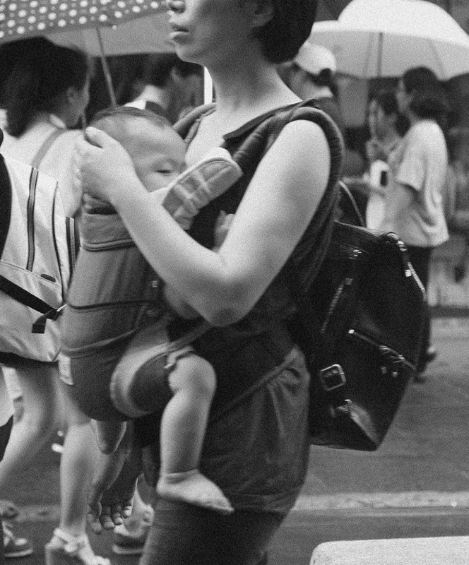 - 설명비오는 날 엄마 품 속의 아기입니다