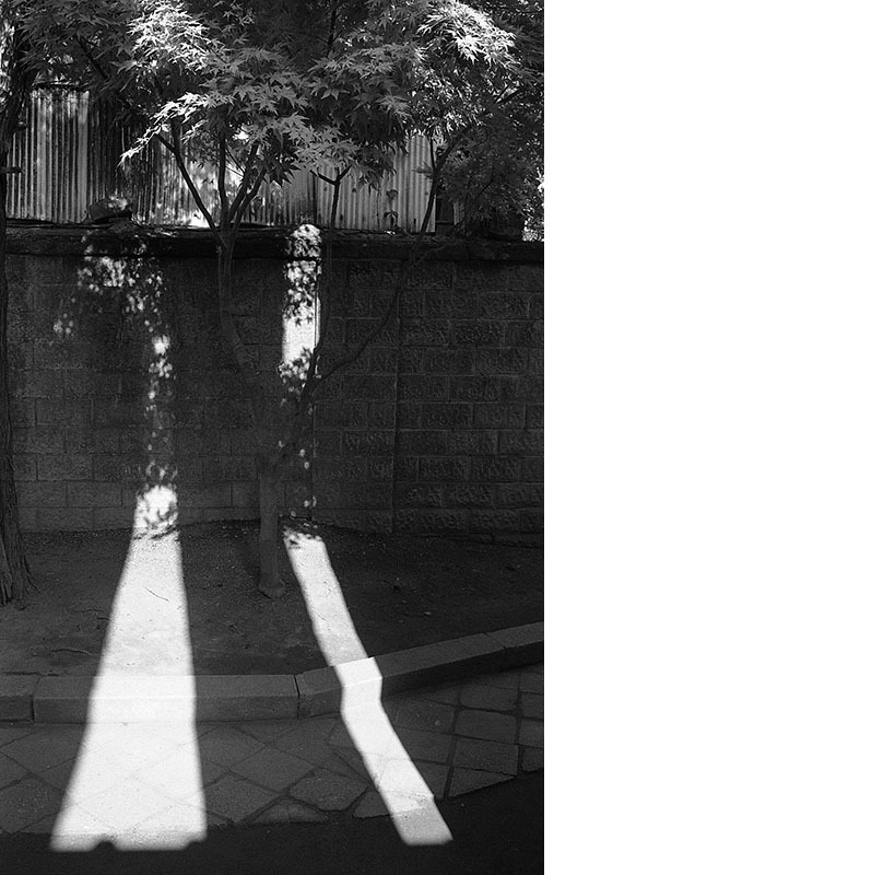 쌍을 이루며 월담하는 빛이 담 안과 밖을 이어주는군요.