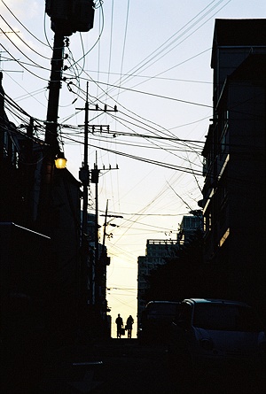 - 가로등 하나둘 켜지고 해지는 언덕,