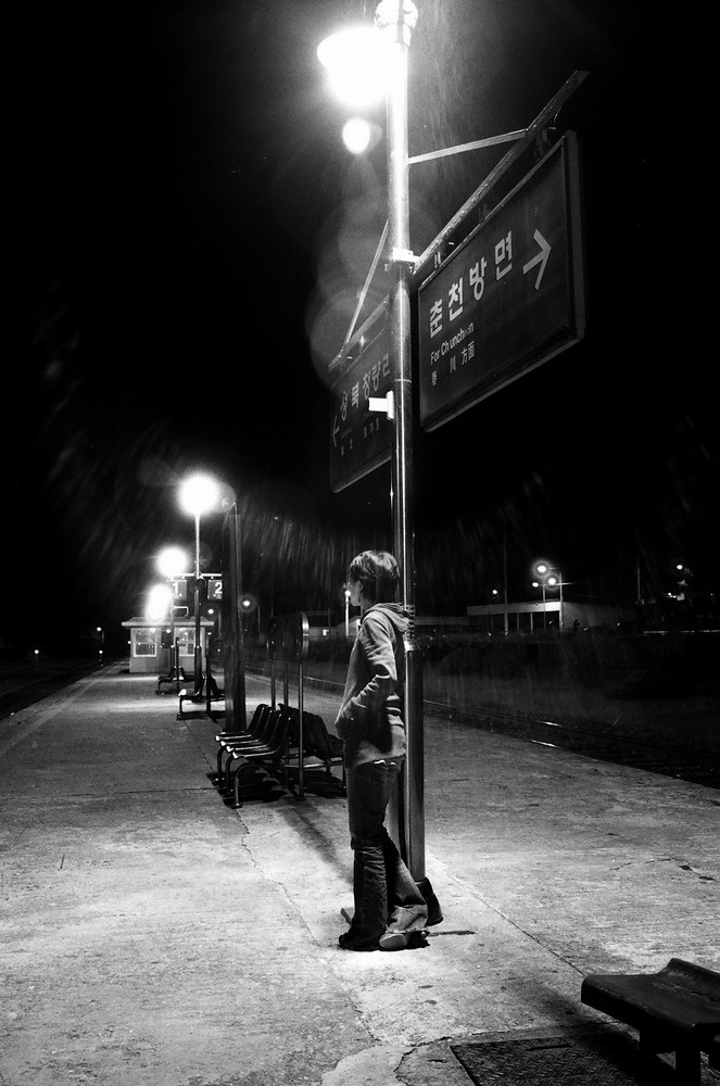 - 설명작년 가평 자라섬에서 있었던 재즈페스티벌을 관람하고 마지막 기차를 기다렸습니다. 비오는 날은 아니었지만, 흙먼지에 필터에 붙어 기차역 조명에 반사되어 비오는듯한 느낌을 줍니다.
