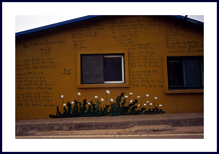 - 설명20년전 군 시절을 더듬어 찾아 갔던 평택 Camp Humphreys (K-6). 얼떨결에 겹겹이 서 있는 검문소를 무사히 통과하면서 찾아 들어 간 대추리는 마치 이념 전쟁의 터처럼 보였다. 여기 저기 꽂힌 깃발들. 벽마다 이념성 시들. 그리고 동네를 감시하는 감시단원까지...