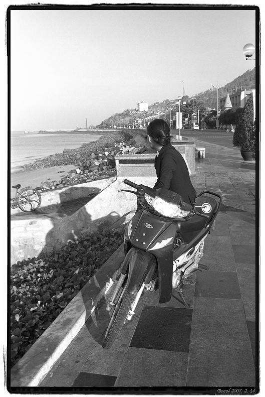A lady on the bike... 이영준 Film2006 관련링크 본문 페이지 정보 작성일 : 07-02-24 21:31 464 2 6 추천하기이 사진을 추천합니다 이영준님 사진 모두보기 + 설명Vietnam 붕따우해변에서 아침 햇살을 받으며 오토바이 위에 앉아 바다를 바라보던 여인... 말을 걸어볼까 하다 걍 사진만 몇 장 찍고 지나쳤다. 디지털 카메라 Maker Model Data Time 2007:02:24 21:29:15 Exposure Time ISO Speed Exposure Bias Value 다음 사진 이전 사진 목록 추천 6 댓글목록 서재근님의 댓글 서재근 07-02-24 22:14 지난달 방문했던 호치민의 가이드 말이 생각나는근요. 연인들이 데이트를 오토바이에 앉아서 모든걸한다구요. 밥두먹구, 이야기도하고 포옹도하고,,,, 베트남에서 오토바이는 생필품 이더군요. 예쁜 사진 입니다. 지난달 방문했던 호치민의 가이드 말이 생각나는근요.<br /> 연인들이 데이트를 오토바이에 앉아서 모든걸한다구요.<br /> 밥두먹구, 이야기도하고 포옹도하고,,,,<br /> <br /> 베트남에서 오토바이는 생필품 이더군요.<br /> 예쁜 사진 입니다. 이효성님의 댓글 이효성 07-02-25 00:44 저 까만 머리 위에 삼각뿔 모자(이름이 뭔지 몰라서)를 살짝 쒸우면 참 예쁘겠다는 생각이 듭니다. 그리고 찰칵... 저 까만 머리 위에 삼각뿔 모자(이름이 뭔지 몰라서)를 살짝 쒸우면 참 예쁘겠다는 생각이 듭니다. 그리고 찰칵... 추천 회원목록 최정균 이효성 박인규 김선근 신재걸 추천하기 닫기 쪽지보내기 전송 닫기 개인정보처리방침 “라이카클럽“(이하 “회사”)는 개인정보보호법에 따라 이용자의 개인정보 보호 및 권익을 보호하고 개인정보와 관련한 이용자의 고충을 원활하게 처리할 수 있도록 다음과 같은 처리방침을 두고 있습니다. 고객님의 정보는 개인의 소중한 자산인 동시에 회사 운영의 중요한 자료가 됩니다. 그러므로 회사는 운영상의 모든 과정에서 고객님의 개인정보를 보호하는데 최선의 노력을 다할 것을 약속 드립니다. 회사는 개인정보처리방침을 개정하는 경우 웹사이트를 통하여 공지할 것입니다. 제 1장. 개인정보 수집 동의절차 회사는 귀하께서 웹사이트의 개인정보보호방침 또는 이용약관의 내용에 대해 (동의한다)버튼 또는 (동의하지 않는다)버튼을 클릭할 수 있는 절차를 마련하여 (동의한다)버튼을 클릭하면 개인정보 수집에 대해 동의한 것으로 봅니다. 제 2장. 개인정보의 수집 및 이용 목적 회사는 개인정보를 다음의 목적을 위해 활용합니다. 처리한 개인정보는 다음의 목적 이외의 용도로는 사용되지 않으며 이용 목적이 변경될 시 사전동의를 구할 예정입니다. 가. 성명, 아이디, 비밀번호 : 회원 가입의사 확인, 서비스 부정이용 방지, 접속 빈도파악, 회원제 서비스 이용에 따른 본인 식별 절차 나. 이메일주소, 전화번호(수신여부 확인) : 고지사항 전달, 본인 의사 확인, 불만 처리 등 원활한 의사소통 경로의 확보, 이벤트 및 광고성 정보 제공 및 참여기회 제공, 접속 빈도파악 또는 회원의 서비스이용에 대한 통계 다. 주소, 전화번호 : 경품과 물품 배송에 대한 정확한 배송지의 확보 제 3장. 광고정보의 전송 가. 회사는 귀하의 명시적인 수신거부의사에 반하여 영리목적의 광고성 정보를 전송하지 않습니다. 나. 회사는 약관변경, 기타 서비스 이용에 관한 변경사항, 새로운 서비스/신상품이나 이벤트 정보, 기타 상품정보 등을 전자우편, 휴대폰 문자전송 기타 전지적 전송매체 등의 방법으로 알려드립니다. 이 경우 관련 법령상 명시사항 및 명시방법을 준수합니다. 다. 회사는 상품정보 안내 등 온라인 마케팅을 위해 광고성 정보를 전자우편 등으로 전송하는 경우 전자 우편의 제목란 및 본문란에 귀하가 쉽게 알아 볼 수 있도록 조치합니다. 제 4장. 개인정보의 수집범위 회사는 별도의 회원가입 절차 없이 대부분의 콘텐츠에 자유롭게 접근할 수 있습니다. 회원제 서비스를 이용하고자 할 경우 다음의 정보를 입력해주셔야 합니다. 가. 개인정보 수집항목 : 이름, 이메일, 생년월일, 아이디, 비밀번호, 성별, 주소, 휴대폰 번호(전화), 이메일 수신여부, SMS 수신여부, 서비스 이용기록, 접속로그, 받는 고객 정보(이름, 전화번호, 주소, 이메일) 나. 개인정보 수집방법 : 홈페이지 내 회원가입 및 게시판 등 제 5장. 개인정보의 보유 및 이용기간 회사는 개인정보 수집 및 이용목적이 달성된 후에는 해당 정보를 지체 없이 파기합니다. 단, 다음의 정보에 대해서는 아래의 이유로 명시한 기간 동안 보존합니다. -보존항목 : 이름, 로그인 ID, 비밀번호, 이메일, 생년월일 -보존근거 : 불량 회원의 부정한 이용의 재발 방지 -보존기간 : 1개월 그리고 관계법령의 규정에 의하여 보존할 필요가 있는 경우 회사는 아래와 같이 관계법령에서 정한 일정한 기간 동안 회원정보를 보관합니다. 소비자의 불만 또는 분쟁처리에 관한 기록 : 3년 (전자상거래 등에서의 소비자보호에 관한 법률) 제 6장. 개인정보의 파기 절차 및 방법 회사는 원칙적으로 개인정보 처리목적이 달성된 경우에는 지체 없이 해당 개인정보를 파기합니다. 파기의 절차, 기한 및 방법은 다음과 같습니다. -파기절차 회원님이 회원가입 등을 위해 입력하신 정보는 목적 달성 후 별도의 DB로 옮겨