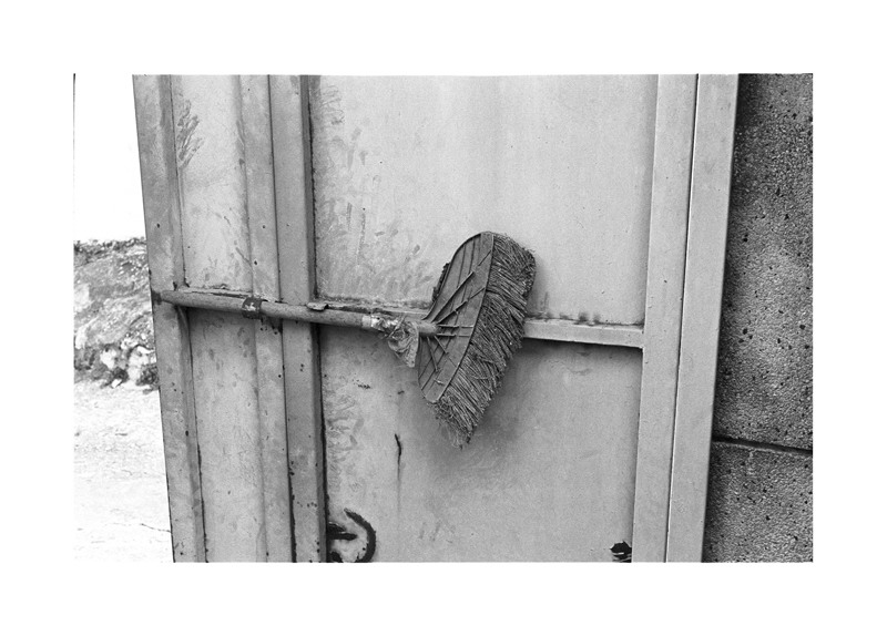 문을 가로 질러 누워 있는 나무 막대보다 그 끝에 까칠한 솔이 더 인상적입니다.