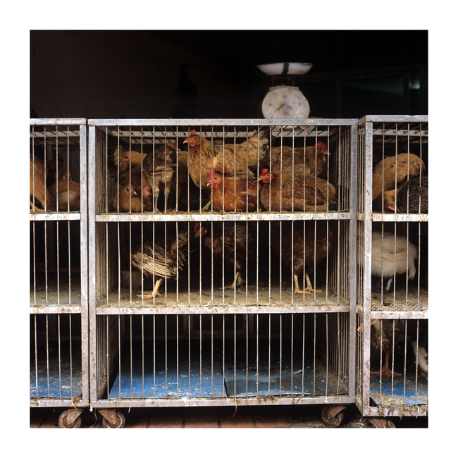 주인은 저울에 푸드득 거리는 닭을 달아 가격을 흥정하고,