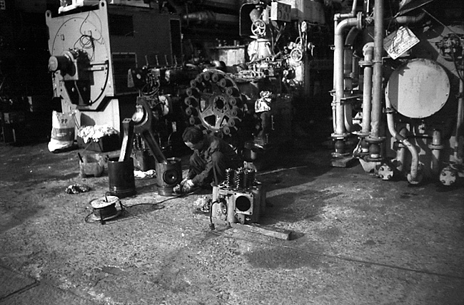 1000마력 이상될 듯한 대형 엔진의 핵심 부품을 다루는 쪼그려 앉아있는