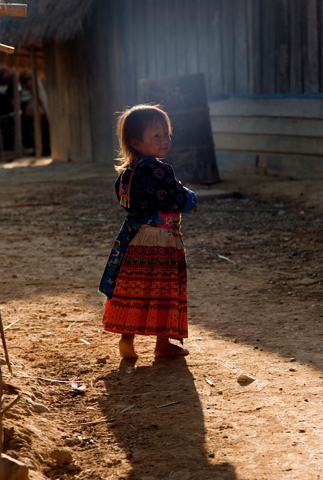 아이의 순수한 미소가 역광으로 더욱 극적으로 보입니다