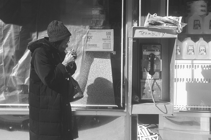 - 설명할렘에서...바람속에서 어렵게 담배불을 붙이시는 할머니..