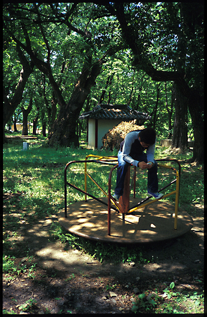 우거진 나무와, 그 사이로 새 들어오는 햇살.. 그리고 오래된 놀이기구가 뭔가 향수를
