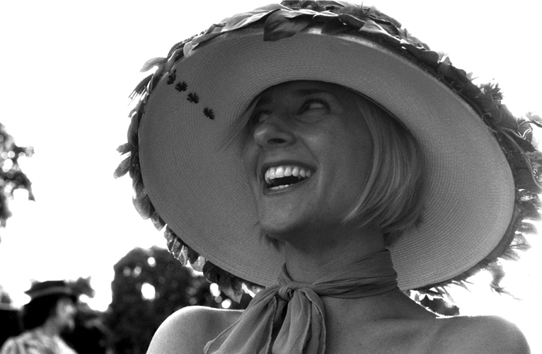 - 설명길거리에 서서 행위예술을 감상하던 여인.