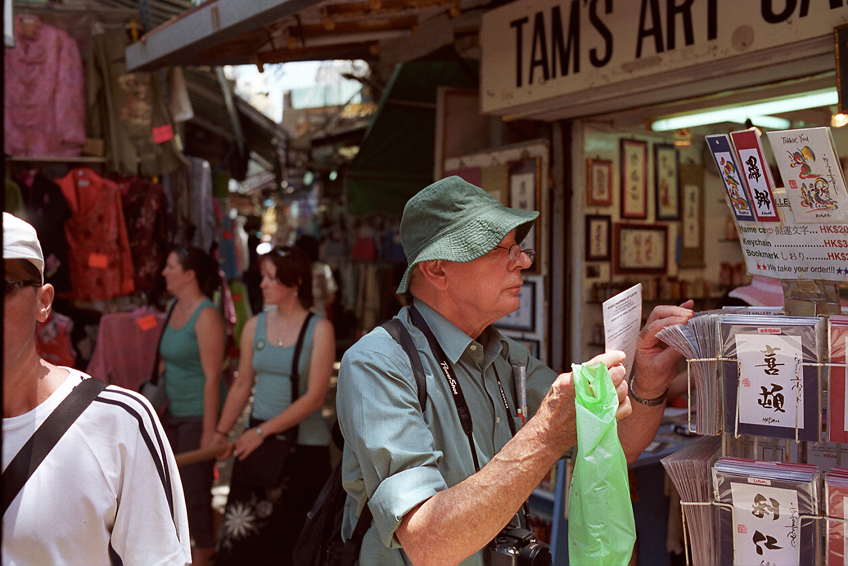 저 외국인 아저씨 신중하게 엽서를 고르고 있네요.