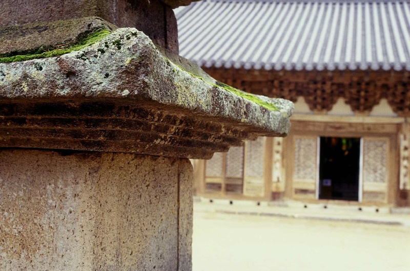 앞의 돌탑(기둥?)의 세월과 뒤 본전의 기와의 세월이 틀려보입니다.
