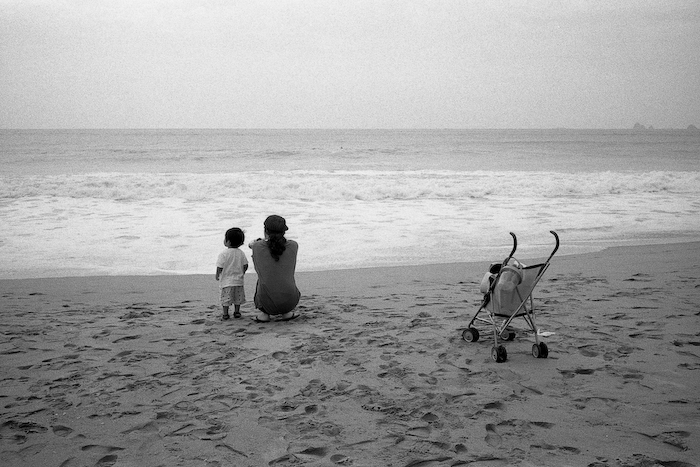 유모차와 모자의 구도가 정겹습니다.