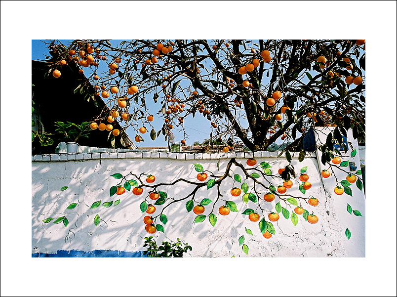 하얀벽과 파란하늘과 빨간감... 참 멋진 조화네요.