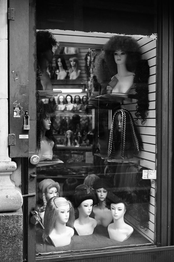 마네킨들이 가발을 쓰고 갇혀 있는.. 느낌.