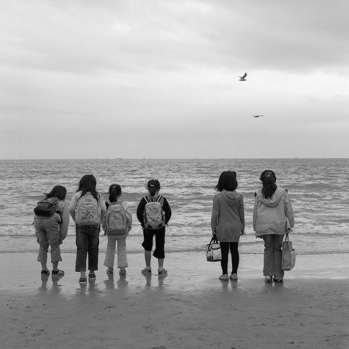 바다에 넋을 빼앗긴 아이들 같습니다.