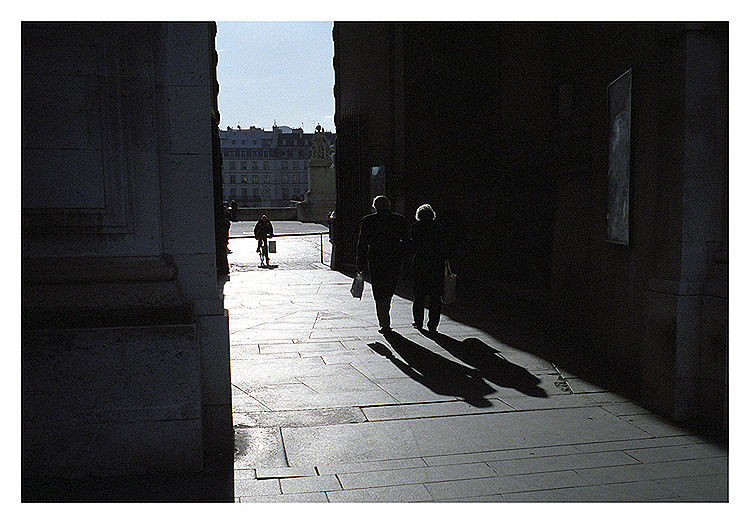 역광의 그림자와 기하학적인 바닥돌의 문양.........