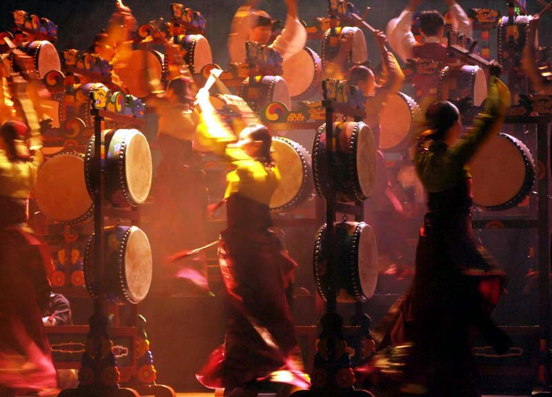 - 설명2009.12.5 '오고무'... 네모진 틀 위에 5개의 북을 걸어놓고 북을 치며 춤추는 타악무이다.