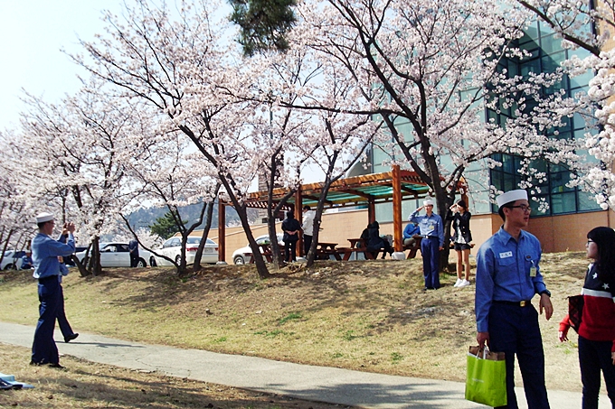 멋진 거수경례에 만개한 벚꽃들이 박수를 보내고 있군요.^^