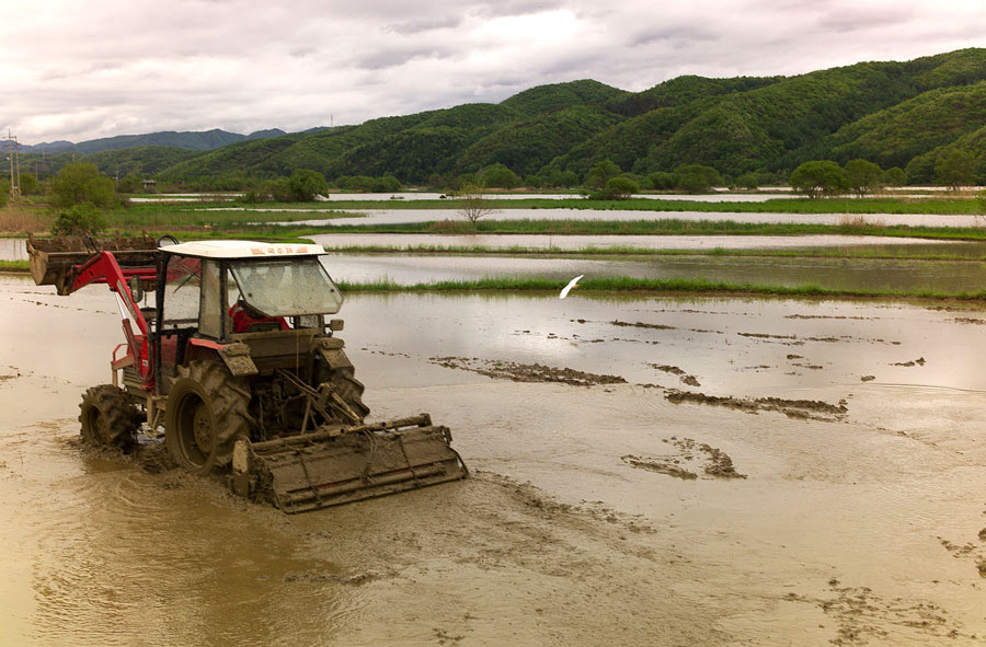 - 설명농부와 학 (두루미 ?)...
