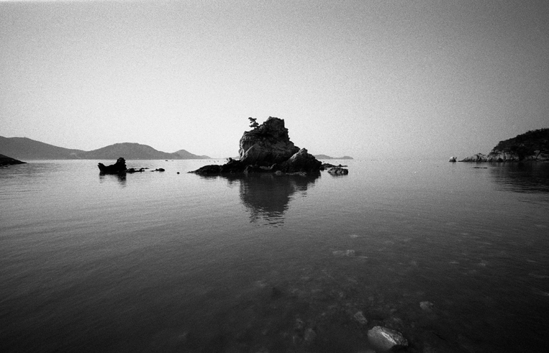 가운데 바위와 주변의 경관이 멋지게 어울리는것 같습니다.