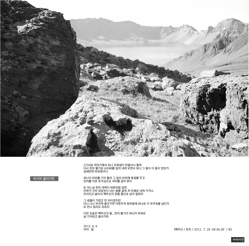 다만 오늘은 백두산의 돌...천지 물가의 하나의 바위로