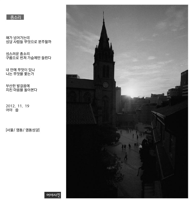 실루엣으로 그려진 사람들의 모습이 성당의 첨탑과 잘 어울려 인상적입니다..