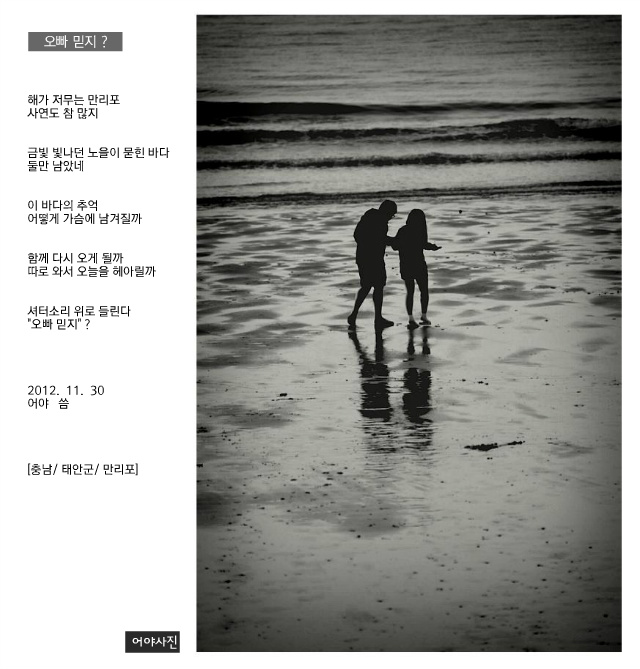 바다의 추억과 '오빠 믿지?'라는 글이 인상적 입니다.