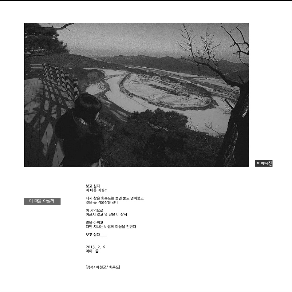 그리워하는 사람과의 인연은 꼭 이루어 진다고 생각합니다. 좋은 풍경과 시에 잠시 누군가를 그리워하게 되네요. ^^ |