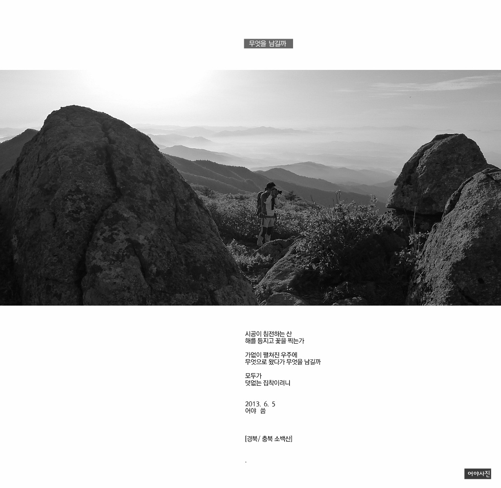 이런 비경에서 뭘 남기면 저가 질투가 날것 같으네요...ㅎㅎ 소백산에서 보약드시고 오셨네요!!! |