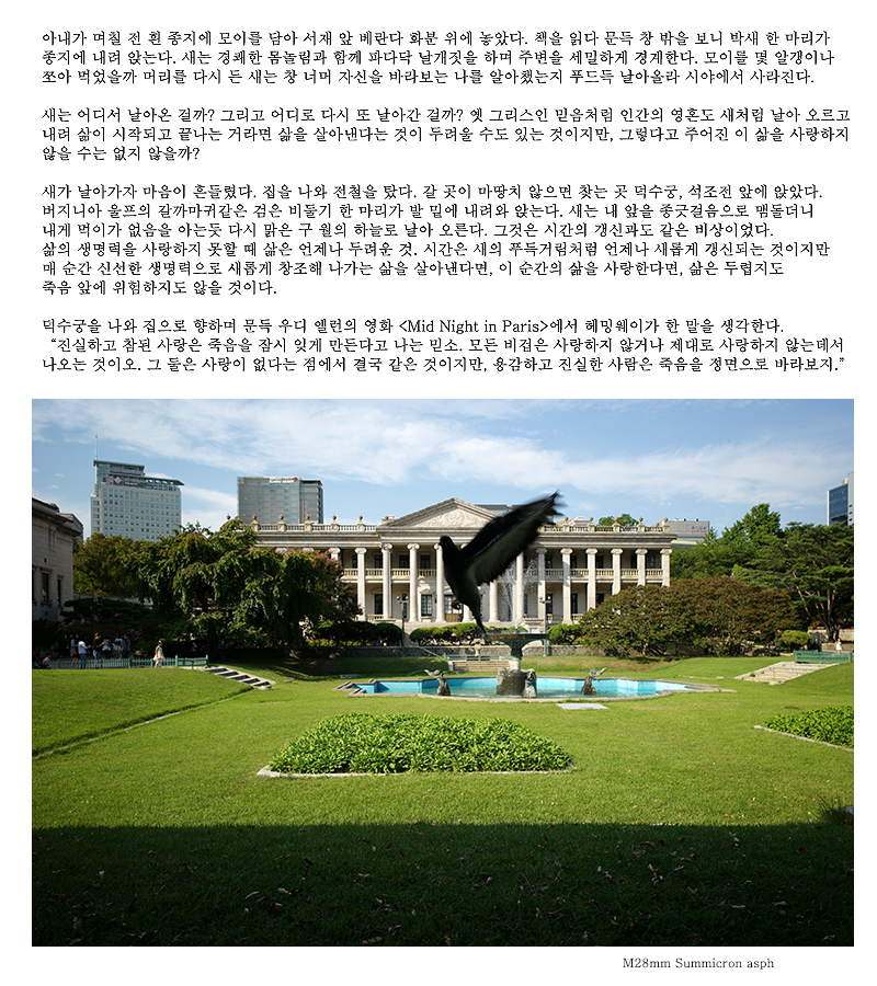 이치환님의 댓글 이치환 16-09-27 06:20 글과 함께 보여주는 사진, 좋습니다. '창조적 삶이 아니더라도, 순간 순간을 이렇게 음미하면 사는 맛이 남다를 것 같습니다.' 글과 함께 보여주는 사진, 좋습니다.<br /> '창조적 삶이 아니더라도, 순간 순간을 이렇게 음미하면 사는 맛이 남다를 것 같습니다.' 김승현님의 댓글 김승현 16-09-27 14:01 새를 언제 저렇게 찍을수있을까요? 배경하고 잘어룰리고 이국적입니다. 이렇게 저렇게 새가 화두입니다. ㅎㅎ 새 좀 길러보시죠....ㅋ 새를 언제 저렇게 찍을수있을까요?<br /> 배경하고 잘어룰리고 이국적입니다.<br /> 이렇게 저렇게 새가 화두입니다. ㅎㅎ<br /> 새 좀 길러보시죠....ㅋ 추천 회원목록 김승현 이치환 박인종 서원호 박서진 오 명호 박대원 임용규 추천하기 닫기 쪽지보내기 전송 닫기 개인정보처리방침 “라이카클럽“(이하 “회사”)는 개인정보보호법에 따라 이용자의 개인정보 보호 및 권익을 보호하고 개인정보와 관련한 이용자의 고충을 원활하게 처리할 수 있도록 다음과 같은 처리방침을 두고 있습니다. 고객님의 정보는 개인의 소중한 자산인 동시에 회사 운영의 중요한 자료가 됩니다. 그러므로 회사는 운영상의 모든 과정에서 고객님의 개인정보를 보호하는데 최선의 노력을 다할 것을 약속 드립니다. 회사는 개인정보처리방침을 개정하는 경우 웹사이트를 통하여 공지할 것입니다. 제 1장. 개인정보 수집 동의절차 회사는 귀하께서 웹사이트의 개인정보보호방침 또는 이용약관의 내용에 대해 (동의한다)버튼 또는 (동의하지 않는다)버튼을 클릭할 수 있는 절차를 마련하여 (동의한다)버튼을 클릭하면 개인정보 수집에 대해 동의한 것으로 봅니다. 제 2장. 개인정보의 수집 및 이용 목적 회사는 개인정보를 다음의 목적을 위해 활용합니다. 처리한 개인정보는 다음의 목적 이외의 용도로는 사용되지 않으며 이용 목적이 변경될 시 사전동의를 구할 예정입니다. 가. 성명, 아이디, 비밀번호 : 회원 가입의사 확인, 서비스 부정이용 방지, 접속 빈도파악, 회원제 서비스 이용에 따른 본인 식별 절차 나. 이메일주소, 전화번호(수신여부 확인) : 고지사항 전달, 본인 의사 확인, 불만 처리 등 원활한 의사소통 경로의 확보, 이벤트 및 광고성 정보 제공 및 참여기회 제공, 접속 빈도파악 또는 회원의 서비스이용에 대한 통계 다. 주소, 전화번호 : 경품과 물품 배송에 대한 정확한 배송지의 확보 제 3장. 광고정보의 전송 가. 회사는 귀하의 명시적인 수신거부의사에 반하여 영리목적의 광고성 정보를 전송하지 않습니다. 나. 회사는 약관변경, 기타 서비스 이용에 관한 변경사항, 새로운 서비스/신상품이나 이벤트 정보, 기타 상품정보 등을 전자우편, 휴대폰 문자전송 기타 전지적 전송매체 등의 방법으로 알려드립니다. 이 경우 관련 법령상 명시사항 및 명시방법을 준수합니다. 다. 회사는 상품정보 안내 등 온라인 마케팅을 위해 광고성 정보를 전자우편 등으로 전송하는 경우 전자 우편의 제목란 및 본문란에 귀하가 쉽게 알아 볼 수 있도록 조치합니다. 제 4장. 개인정보의 수집범위 회사는 별도의 회원가입 절차 없이 대부분의 콘텐츠에 자유롭게 접근할 수 있습니다. 회원제 서비스를 이용하고자 할 경우 다음의 정보를 입력해주셔야 합니다. 가. 개인정보 수집항목 : 이름, 이메일, 생년월일, 아이디, 비밀번호, 성별, 주소, 휴대폰 번호(전화), 이메일 수신여부, SMS 수신여부, 서비스 이용기록, 접속로그, 받는 고객 정보(이름, 전화번호, 주소, 이메일) 나. 개인정보 수집방법 : 홈페이지 내 회원가입 및 게시판 등 제 5장. 개인정보의 보유 및 이용기간 회사는 개인정보 수집 및 이용목적이 달성된 후에는 해당 정보를 지체 없이 파기합니다. 단, 다음의 정보에 대해서는 아래의 이유로 명시한 기간 동안 보존합니다. -보존항목 : 이름, 로그인 ID, 비밀번호, 이메일, 생년월일 -보존근거 : 불량 회원의 부정한 이용의 재발 방지 -보존기간 : 1개월 그리고 관계법령의 규정에 의하여 보존할 필요가 있는 경우 회사는 아래와 같이 관계법령에서 정한 일정한 기간 동안 회원정보를 보관합니다. 소비자의 불만 또는 분쟁처리에 관한 기록 : 3년 (전자상거래 등에서의 소비자보호에 관한 법률) 제 6장. 개인정보의 파기 절차 및 방법 회사는 원칙적으로 개인정보 처리목적이 달성된 경우에는 지체 없이 해당 개인정보를 파기합니다. 파기의 절차, 기한 및 방법은 다음과 같습니다. -파기절차 회원님이 회원가입 등을 위해 입력하신 정보는 목적 달성 후 별도의 DB로 옮겨져(종이의 경우 별도의 서류함) 내부 방침 및 기타 관련 법령에 의한 정보보호 사유에 따라(보유 및 이용기간 참조) 일정 기간 저장 된 후 파기합니다. 별도 DB로 옮겨진 개인정보는 법률에 의한 경우가 아니고서는 보유 이외의 다른 목적으로 이용되지 않습니다. -파기기한 이용자의 개인정보는 개인정보의 보유기간이 경과된 경우에는 보유기간의 종료일로부터 5일 이내에, 개인정보의 처리 목적 달성, 해당 서비스의 폐지, 사업의 종료 등 그 개인정보가 불필요하게 되었을 때에는 개인정보의 처리가 불필요한 것으로 인정되는 