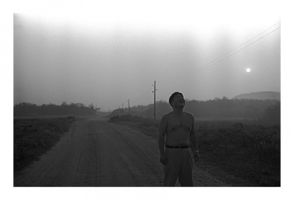 떠오르는 해를 배경으로 하고 무위자연, 드러누운 人者...
