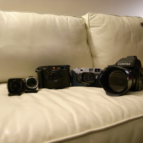 28미리 렌즈에는 재유님이 웃고 있고 옆의 녹턴 40미리에는 이 렌즈를 몹시 좋아라 하는 선배의 얼굴이... M7에는 이것 찾느라 고생고생 돌아다닌 신랑의 얼굴이, 그리고 여기에 며칠 전 강웅천님께 받은 렌즈가 강선배님의 아바타로 보입니다. (직접 뵌 적이 없어서요...) 그리고 그 옆은 지운님의 귀뜸으로 쏜살같이 날려가 찜을 해 버린 MP가 같은 곳에서 구한 현행 35미리랑 물려 있군요... 문득 지아씨가 '35미리~!' 했던 모습도 떠 오르구요... 게다가 옆에 모든 라이카들을 소인국의 구성원처럼 보이게 하는 콘탁스는 지운님의 예쁜 손때가 바닥 바닥 묻어 있는 물건이지요... ㅎㅎㅎ 렌즈는 지아씨를 많이 담아 보았겠구요... 정말 라이카는 그냥 사고 싶다고 손에 들어 오는 물건이 아닌가 봅니다.