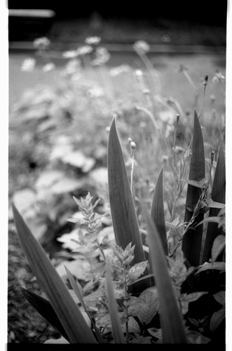 최대개방에서 촬영하였는데 보케가 썩 마음에 들지 않네요.(흑백, 꽃밭에서)